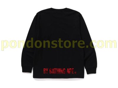 A BATHING APE : COLOR CAMO APE FACE STA LS TEE black/red