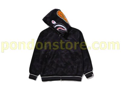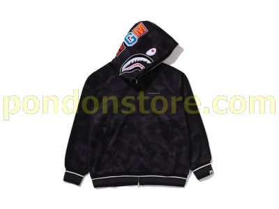A BATHING APE : COLOR CAMO SHARK RELAXED FIT HOODIE TRACK JACKET black