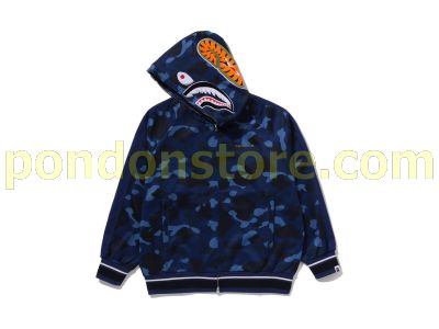 A BATHING APE : COLOR CAMO SHARK RELAXED FIT HOODIE TRACK JACKET navy