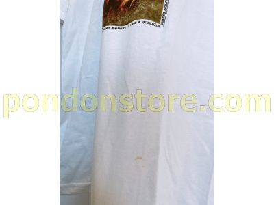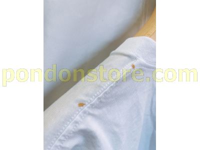 左肩、右袖後側、表プリント周辺と、その左下シミあり