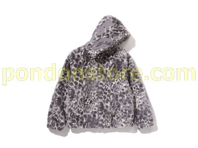 A BATHING APE : WILD LEOPARD PATTERN FAUX FUR SHARK FULL ZIP JACKET gray