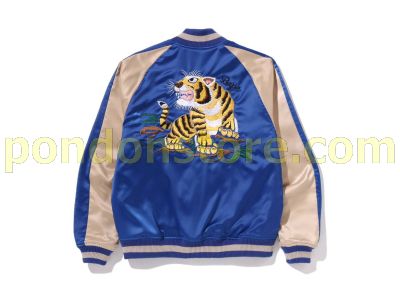 A BATHING APE : TIGER SOUVENIR JACKET blue