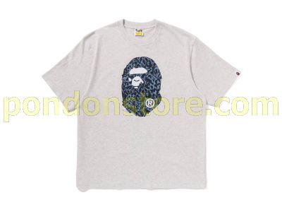 A BATHING APE : WILD LEOPARD PATTERN APE HEAD RELAXED FIT TEE gray
