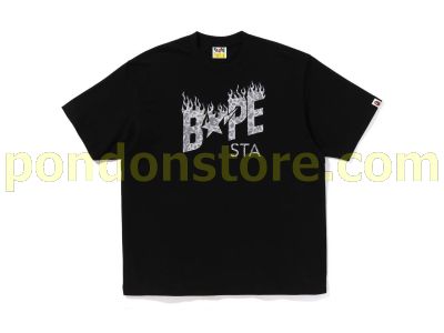 A BATHING APE : WILD LEOPARD PATTERN BAPE STA LOGO RELAXED FIT TEE black