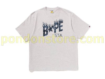 A BATHING APE : WILD LEOPARD PATTERN BAPE STA LOGO RELAXED FIT TEE gray