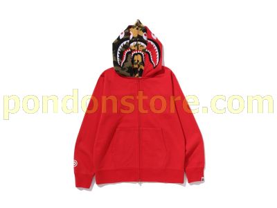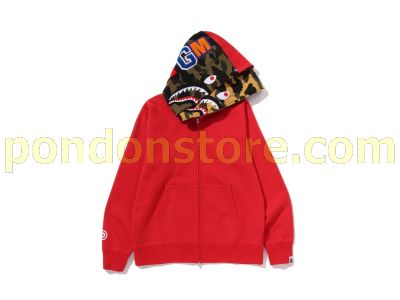 A BATHING APE : SHARK FULL ZIP DOUBLE HOODIE red