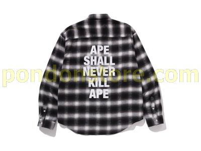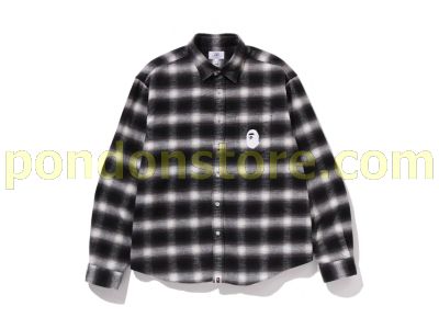 A BATHING APE : BLOCK CHECK RELAXED FIT SHIRT gray