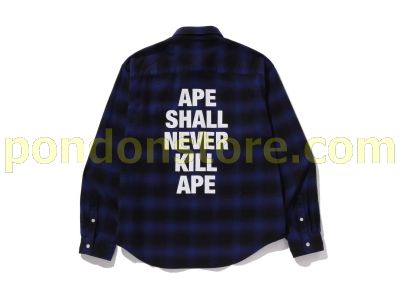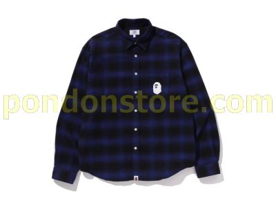 A BATHING APE : BLOCK CHECK RELAXED FIT SHIRT navy