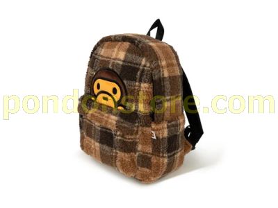 A BATHING APE : BABY MILO FAUX FUR CHECK MEDIUM BACKPACK beige