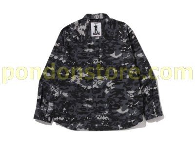 A BATHING APE : MULTI PIXEL CAMO MILITARY SHIRT black