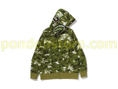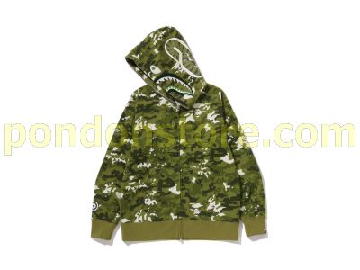 A BATHING APE : MULTI PIXEL CAMO SHARK REGULAR FIT FULL ZIP HOODIE green
