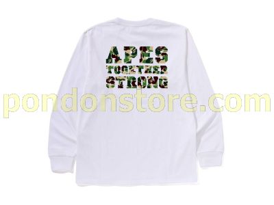 A BATHING APE : ABC CAMO COLLEGE ATS LS TEE white/green
