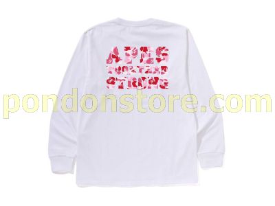 A BATHING APE : ABC CAMO COLLEGE ATS LS TEE white/pink