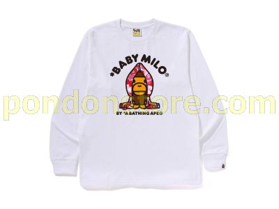 A BATHING APE : ABC CAMO MILO HOODIE LS TEE white/pink