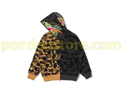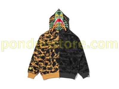 bape clot CAMO SPLIT RELAXED FIT SHARK FULL ZIP HOODIE black