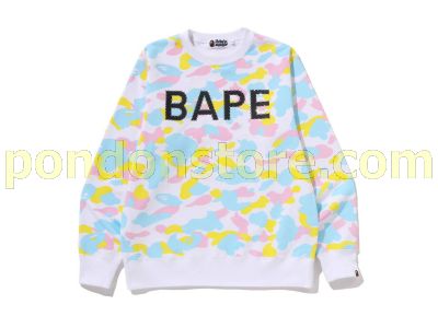 A BATHING APE : NEW MULTI CAMO RHINESTONE REGULAR FIT CREWNECK SWEATSHIRT white