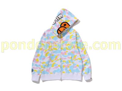 A BATHING APE : NEW MULTI CAMO BABY MILO REGULAR FIT FULL ZIP HOODIE white