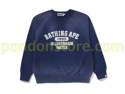 A BATHING APE : DESTROY WASHED EFFECT RELAXED FIT CREWNECK SWEATSHIRT navy