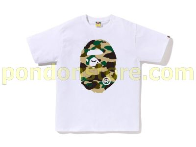 A BATHING APE : 1ST CAMO BIG APE HEAD TEE white/yellow