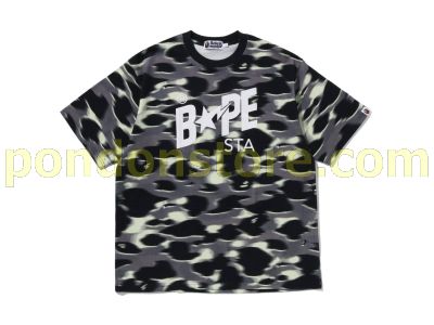 A BATHING APE : SCREEN CAMO STA LOGO RELAXED FIT TEE black