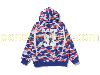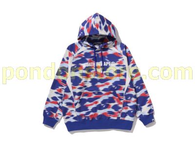 A BATHING APE : SCREEN CAMO FOOTBALL LOGO RELAXED FIT PULLOVER HOODIE blue