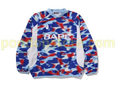 A BATHING APE : SCREEN CAMO FOOTBALL LOGO RELAXED FIT CREWNECK SWEATSHIRT blue