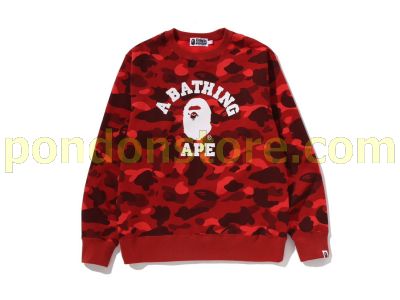 A BATHING APE : COLOR CAMO COLLEGE CREWNECK SWEATSHIRT red