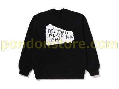 A BATHING APE : BAPE LOGO REVERSIBLE LOOSE FIT CREWNECK SWEATSHIR black