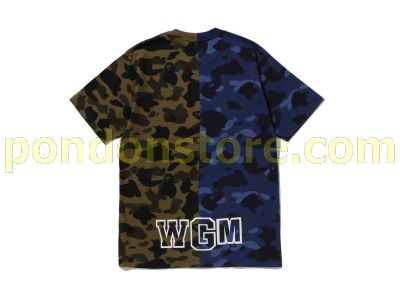 A BATHING APE : SPLIT CAMO SHARK TEE navy