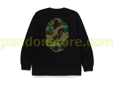 A BATHING APE : 1ST CAMO BIG APE HEAD LS TEE black/green
