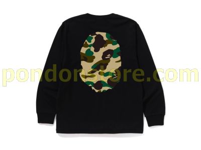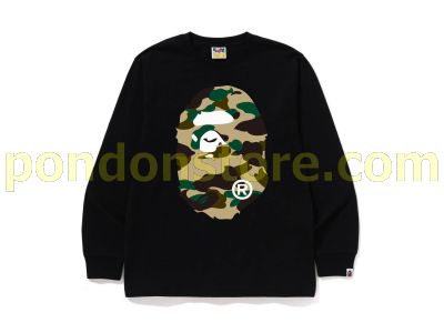 A BATHING APE : 1ST CAMO BIG APE HEAD LS TEE black/yellow