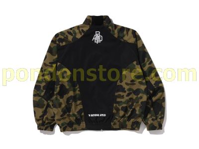 A BATHING APE : 1ST CAMO STAND COLLAR TRACK JACKET green