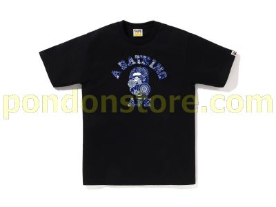 A BATHING APE : JAPANESE INDIGO ART CAMO COLLEGE TEE black/navy