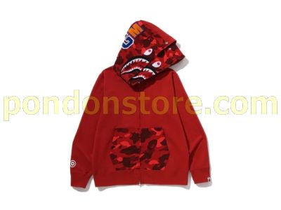 A BATHING APE : COLOR CAMO SHARK FULL ZIP DOUBLE HOODIE red