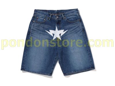 A BATHING APE : TWIN STA RELAXED FIT DENIM SHORTS light indigo