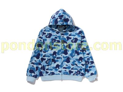 A BATHING APE : ABC CAMO HEAVY WASH CROPPED FIT ZIP HOODIE blue