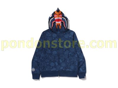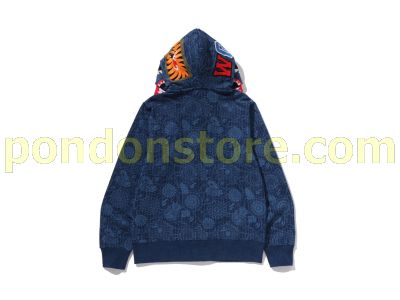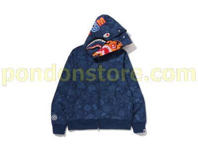 A BATHING APE : JAPANESE INDIGO ART CAMO DOUBLE TIGER SHARK FULL ZIP HOODIE