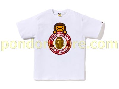 A BATHING APE : COLOR CAMO MILO ON BUSY WORKS TEE white/red