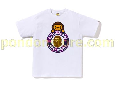 A BATHING APE : COLOR CAMO MILO ON BUSY WORKS TEE white/purple