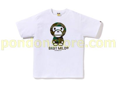 A BATHING APE : 1ST CAMO BABY MILO TEE white/green