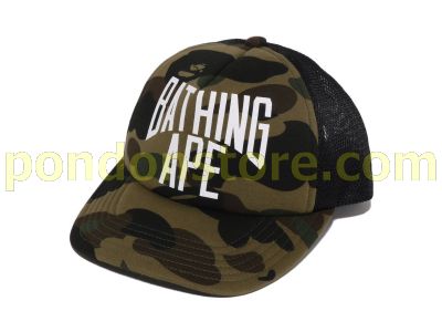 A BATHING APE : 1ST CAMO NYC LOGO MESH CAP green
