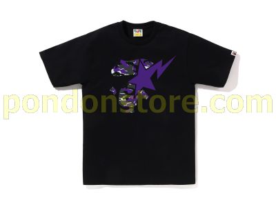 A BATHING APE : GLITCH WOODLAND CAMO APE FACE STA TEE black/purple