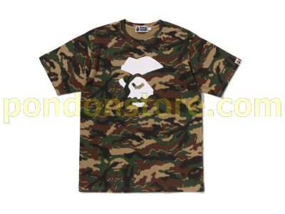 A BATHING APE : GLITCH WOODLAND CAMO APE FACE TEE green