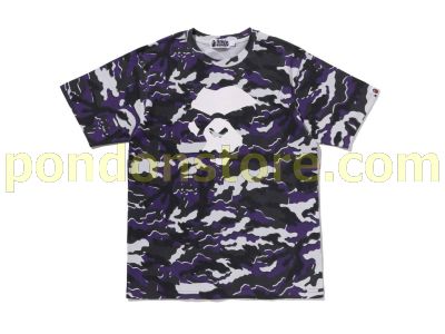 A BATHING APE : GLITCH WOODLAND CAMO APE FACE TEE purple