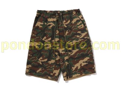 A BATHING APE : GLITCH WOODLAND CAMO DOUBLE KNEE RELAXED FIT SWEAT SHORTS green