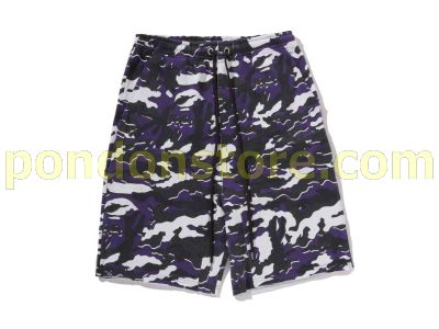 A BATHING APE : GLITCH WOODLAND CAMO DOUBLE KNEE RELAXED FIT SWEAT SHORTS purple