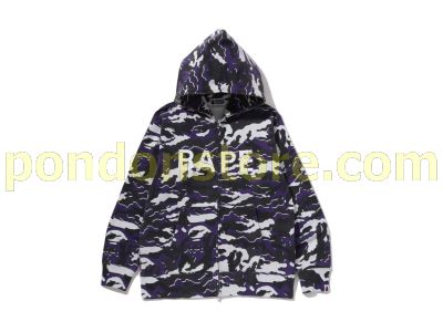 A BATHING APE : GLITCH WOODLAND CAMO FULL ZIP HOODIE purple