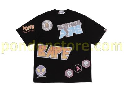 A BATHING APE : MULTI ARCHIVE MOTIF RELAXED FIT TEE black