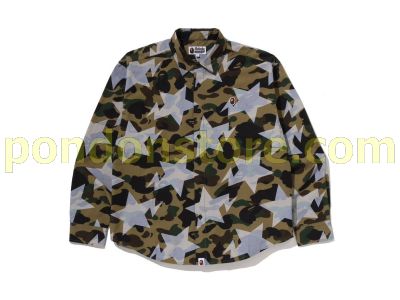A BATHING APE : STA OVER PRINT 1ST CAMO POPLIN LS SHIRT green