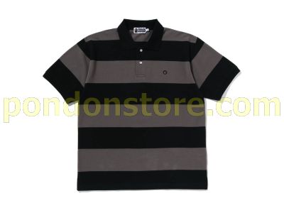 A BATHING APE : MILO ONE POINT STRIPE RELAXED FIT POLO black